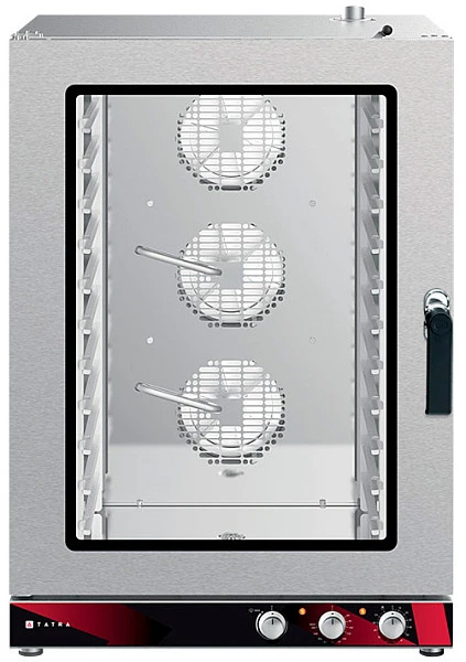 Пароконвектомат Tatra TC12M1L предназначен для использования на предприятиях общественного питания для приготовления различных блюд с применением режимов сочетания конвекции и пара. Фактически пароконвектомат может заменить собой несколько типов теплового оборудования, таких как конвекционная печь, жарочный шкаф, пароварка, плита и сковорода.
