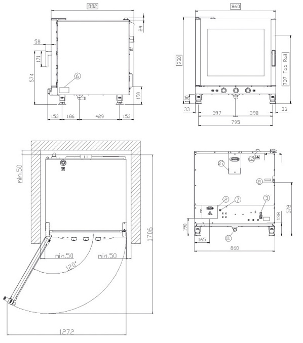 Камера печи изготавливается из нержавеющей стали AISI 304 и имеет скругленные углы для простоты очистки и поддержания гигиены