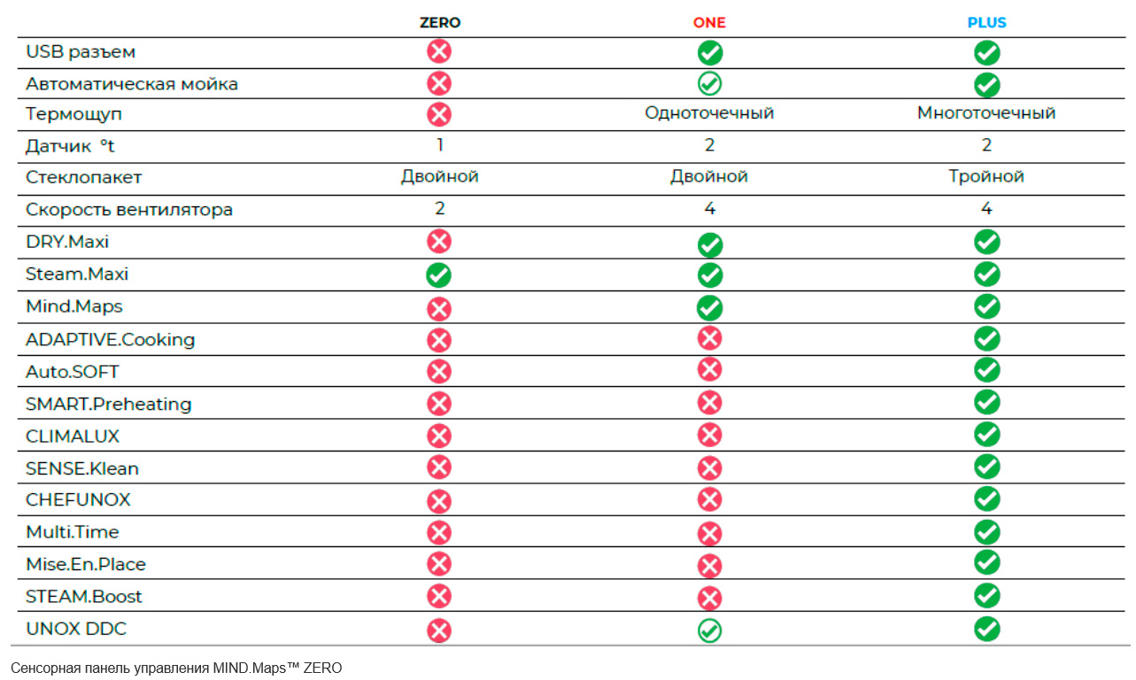 Пароконвекция при температуре от 35 до 260 °C с технологией STEAM.Maxi™ от 30 до 90%