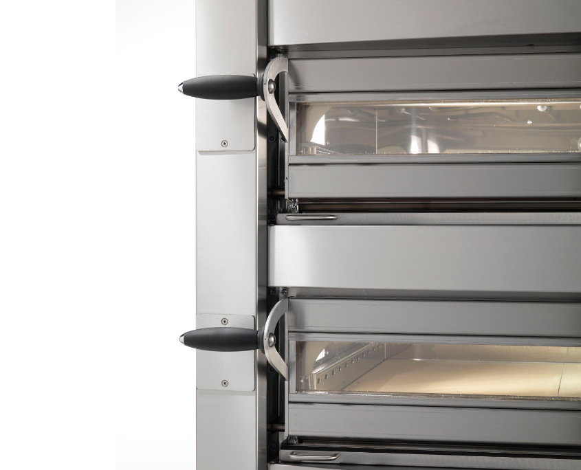Печь для пиццы Cuppone ML635/2TS с передней панелью округлой формы из нержавеющей стали предназначена для приготовления пиццы и различных закусок, таких как, сэндвичи, куриные стрипсы и т.д. на предприятиях общественного питания.