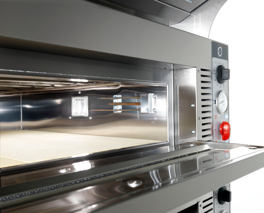 Печь для пиццы Cuppone TP435/1CM с передней панелью и камерой выпечки из нержавеющей стали предназначена для приготовления пиццы и различных закусок, таких как, сэндвичи, куриные стрипсы и т.д. на предприятиях общественного питания.