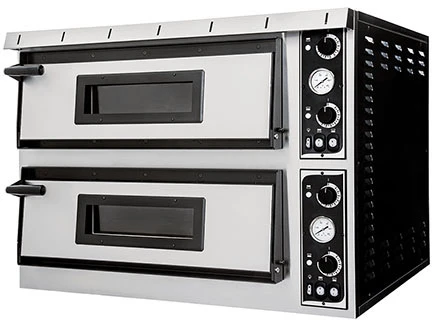 Двухмодульная печь для пиццы Gemlux GEP XL 44 с увеличенным размером камеры предназначена для выпечки пиццы на керамическом поду на предприятиях общественного питания, в пиццериях, ресторанах и т.д.