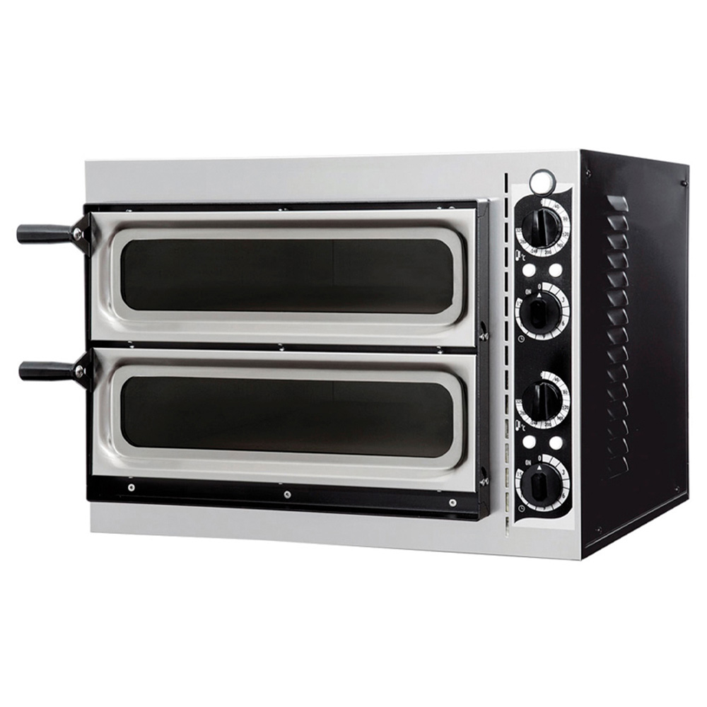 Печь для пиццы Prismafood Small Basic 2/40 (двери со стеклом) используется для выпекания запеканок и пиццы в кафе, ресторанах, барах, кинотеатрах и других заведениях общепита.