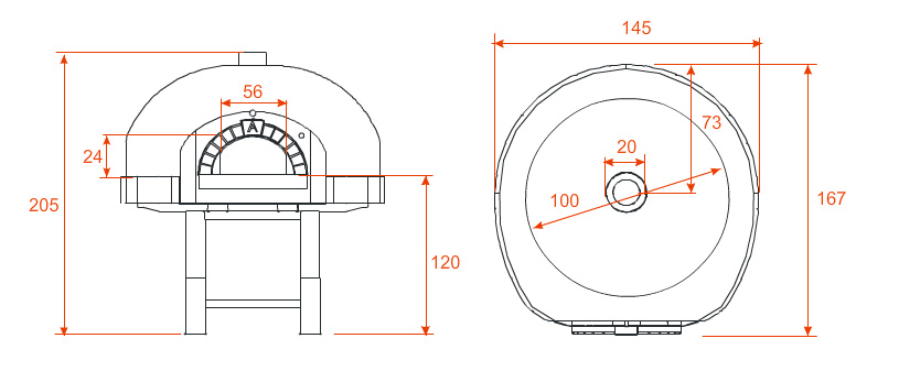 Это классические печи для пиццы. Дрова сгорают в самой камере выпечки, и пиццы приобретают специфический аромат дров. Прямое излучение пламени придает хороший цвет выпеченной пиццы. Камера выпечки имеет форму купола, что способствует равномерному выпеканию и более экономному сгоранию дров. Она выполнена из рефракторного материала с очень высоким процентом диоксида алюминия, что придает ей исключительную прочность и износостойкость. Камера выпечки состоит из крупных монолитных сегментов, поэтому нет необходимости периодически ее смазывать, как при кирпичных печах. Практически, эта камера вечна, и не требует никакого ухода. Камеры с большой толщиной (70-80мм) и большим весом (800-1200кг), что позволяет добиться большого эффекта накопления тепла, а это гарантирует термальную стабильность наших печей – даже при очень интенсивной работе, они не теряют своего температурного режима и обеспечивают высокую производительность.