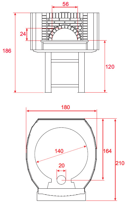 Это классические печи для пиццы. Дрова сгорают в самой камере выпечки, и пиццы приобретают специфический аромат дров. Прямое излучение пламени придает хороший цвет выпеченной пиццы. Камера выпечки имеет форму купола, что способствует равномерному выпеканию и более экономному сгоранию дров. Она выполнена из рефракторного материала с очень высоким процентом диоксида алюминия, что придает ей исключительную прочность и износостойкость. Камера выпечки состоит из крупных монолитных сегментов, поэтому нет необходимости периодически ее смазывать, как при кирпичных печах. Практически, эта камера вечна, и не требует никакого ухода. Камеры с большой толщиной (70-80мм) и большим весом (800-1200кг), что позволяет добиться большого эффекта накопления тепла, а это гарантирует термальную стабильность наших печей – даже при очень интенсивной работе, они не теряют своего температурного режима и обеспечивают высокую производительность.