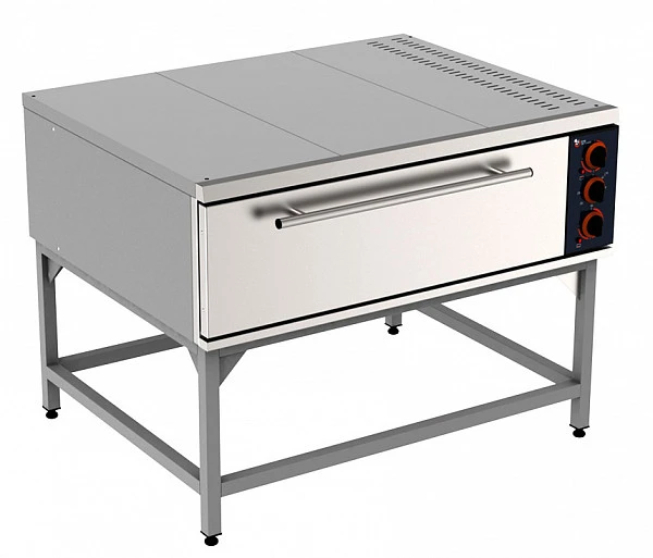 Шкаф имеет модульную конструкцию в виде подставки, нескольких духовых шкафов и крышки (поставляется в собраном виде). Подставка выполнена из профильной трубы 40х40 и окрашена порошковой краской серого цвета. Лицевая панель выполнена из нержавеющей стали марки AISI 430 толщиной 1,2 мм. Задняя и боковые панели, а так же крышка выполнены из конструкционной стали толщиной 1 мм окрашенной порошковой краской серого цвета. Наличие пароувлажнения.