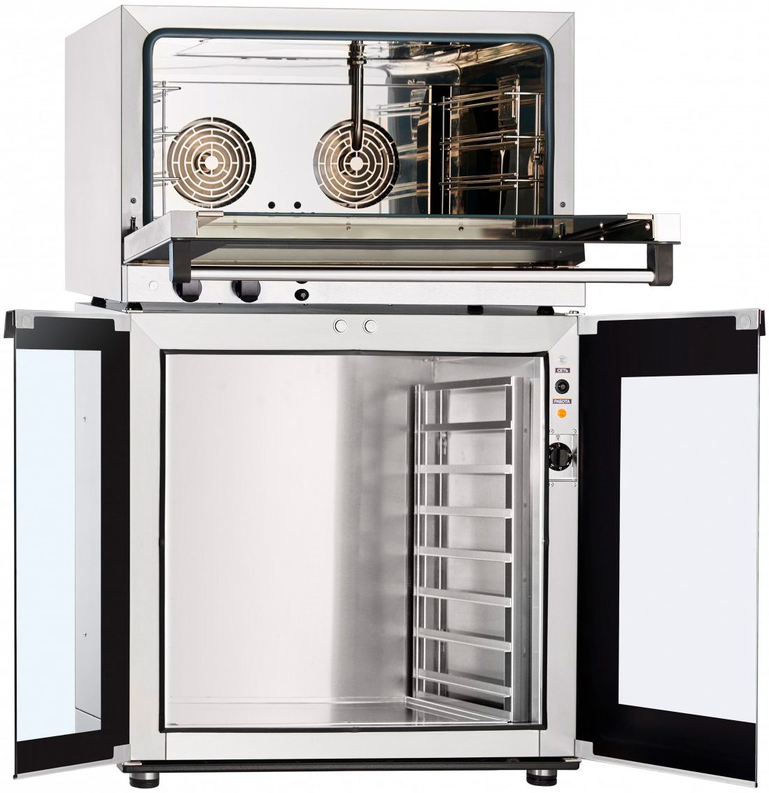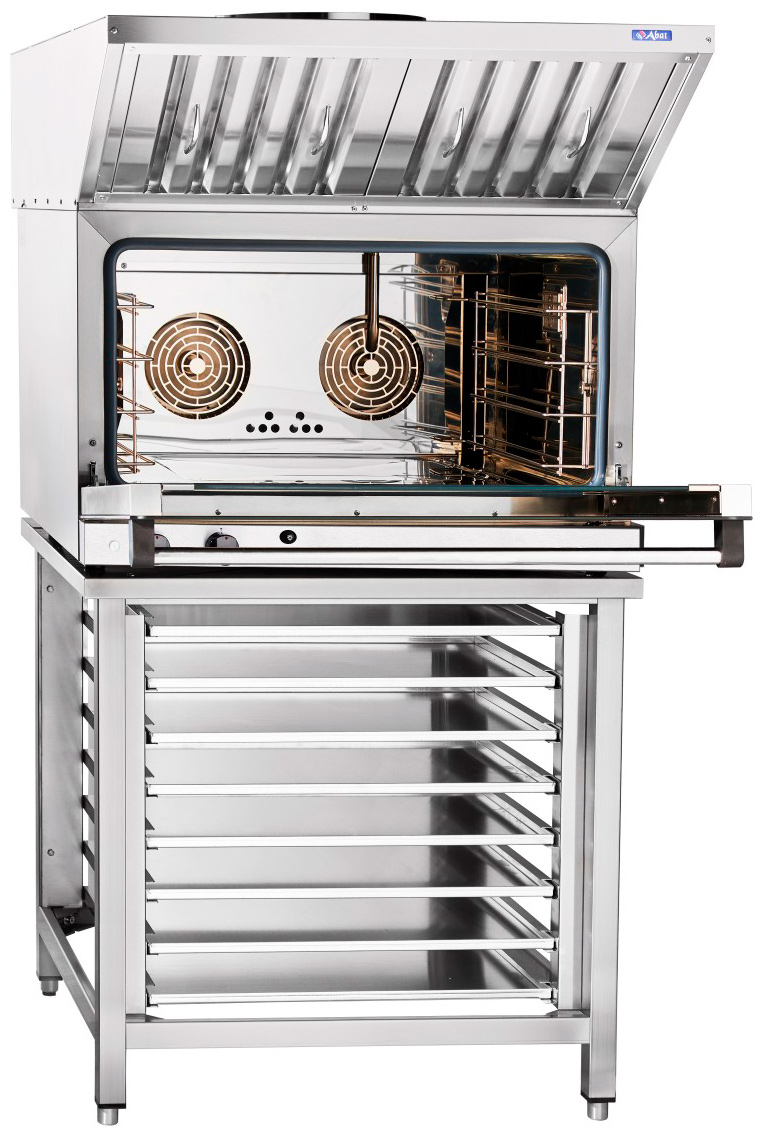 Для удобства эксплуатации конвекционная печь устанавливается на шкаф расстоечный ШРТ-8 (Abat) или на подставку.