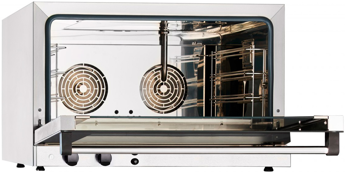 Термообработка продуктов осуществляется за счет равномерной циркуляции горячего воздуха внутри рабочей камеры.