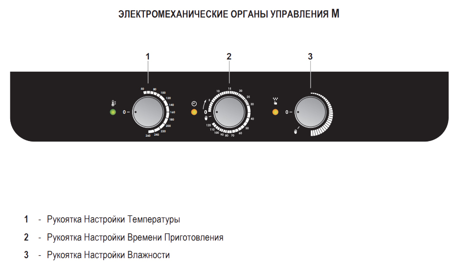Панель управления с электромеханическими переключателями с индикаторами контроля работы.