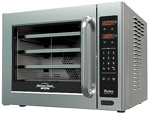 Печь конвекционная электрическая Pratica Miniconv Classic Inox Prog предназначена для выпечки печенья, маффинов, чизкейков, сырных булочек, круассанов, пирогов и пирожков с начинкой, хлеба, а также других кондитерских изделий и выпечки. Данная модель идеально подойдет для пекарен, кафе, закусочных, ресторанов, кондитерских, магазинов повседневного спроса и АЗС.
