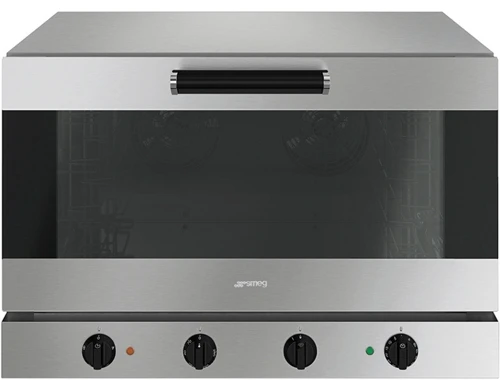 Печь конвекционная электрическая Smeg ALFA420MFH с пароувлажнением и режимами работы: конвекция, конвекция + пароувлажнение, статика, гриль предназначена для выпечки хлебобулочных и кондитерских изделий и приготовления различных блюд на предприятиях пищевой промышленности, общественного питания и торговли.