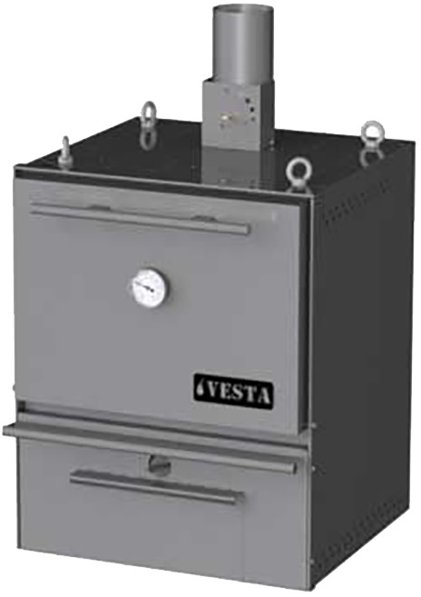 Печь на твердом топливе (хоспер) Vesta 25 (корпус жарочной камеры из черного металла 6 мм) предназначена для работы на профессиональной кухне для приготовления блюда из мяса, овощей и морепродуктов на мангале в закрытом помещении.
