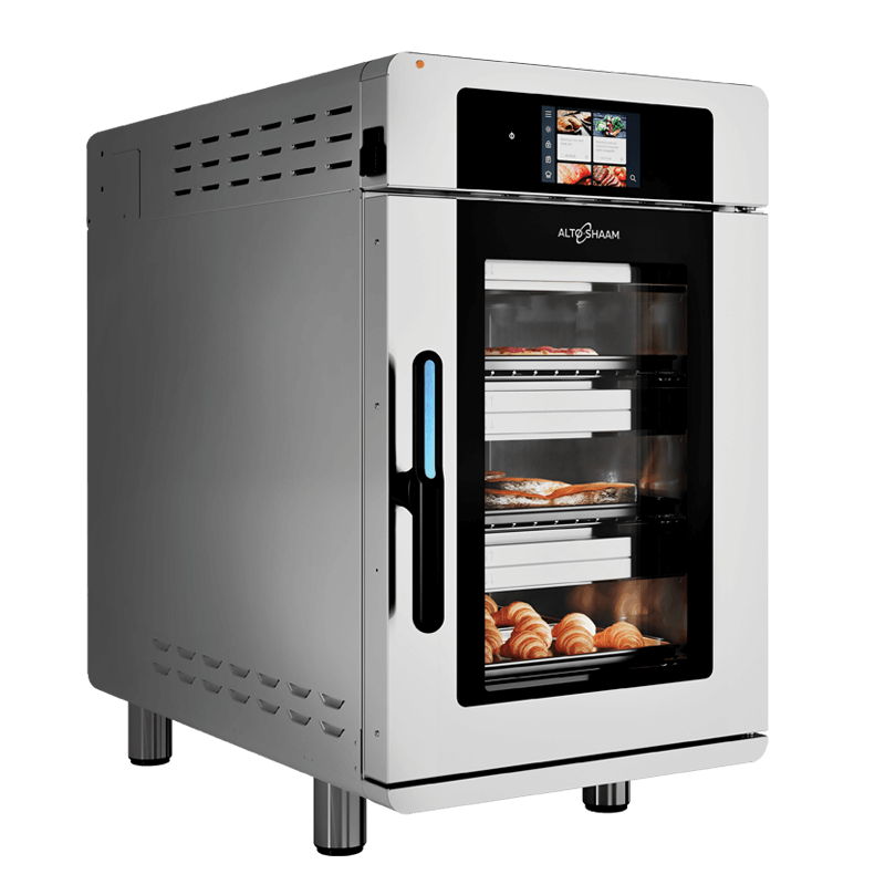 Печь многокамерная Alto Shaam VECTOR VMC-H3H используется на предприятиях общественного питания и в производственных цехах, деятельность которых связана с выпуском гастрономических товаров. Эксклюзивная технология Structured Air Technology® обеспечивает высокоскоростной сфокусированный и равномерный нагрев для более быстрого приготовления блюд, по сравнению с конвекционной печью. Благодаря невероятной гибкости и возможности одновременного приготовления в трёх камерах блюда сохраняют свой неповторимый аромат и вкус. Можно приготовить в 2 раза больше блюд, чем при использовании обычной конвекционной печи. Печь имеет невентилируемый каталитический конвертер, сертифицированный UL. Нельзя вынимать промежуточные уровни (поверхности) для увеличения рабочего объёма печи, так как это приведёт к нарушению движения аэродинамических потоков и неравномерному приготовлению продукта: с одного края он может пригорать, а с другого быть сырым. Уровни можно вынимать только в моделях серии F.