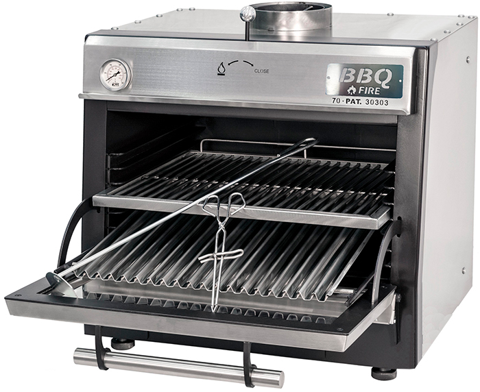 Настольная печь рассчитана на 50 посадочных мест. Являясь одной из наиболее компактных печей своего типа, гриль BR-70 тем не менее имеет производительность 45 кг/час. Эта модель является наиболее экономичной и самой востребованной угольной печью от BBQFire.