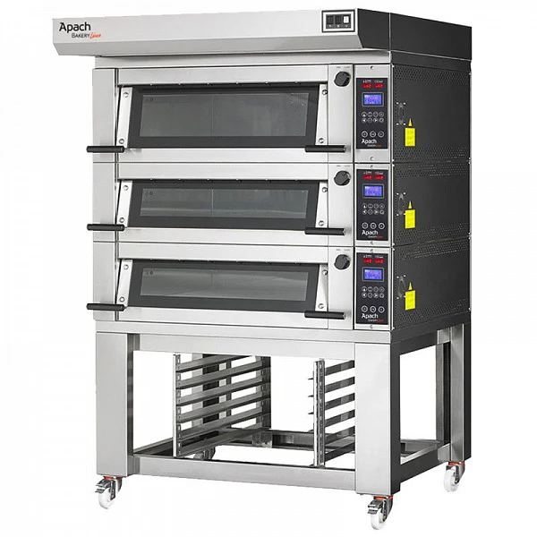 Печь хлебопекарная Apach Bakery Line E2K6SHSE DP серии E с подставкой с направляющими компактное решение с увеличенной производительностью. При оснащении встроенными погрузчиками (отдельная опция) эти печи позволяют добиться производительности уровня больших подовых печей.