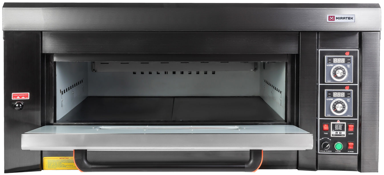 Печь хлебопекарная Miratek BK-12G газовая предназначена для выпечки хлебобулочных и кондитерских изделий на предприятиях общественного питания и торговли. Высокая производительность. Два металлических пода (и два противня) на каждом ярусе.