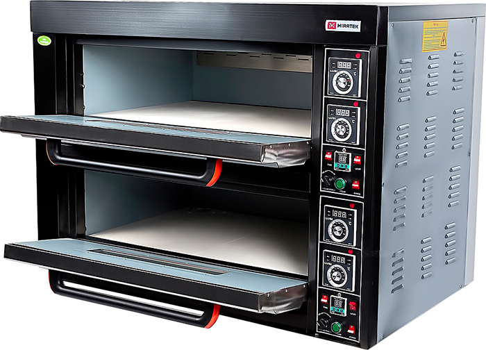 Печь хлебопекарная Miratek BK-24E предназначена для выпечки хлебобулочных и кондитерских изделий на предприятиях общественного питания и торговли. Высокая производительность. Два металлических пода (и два противня) на каждом ярусе.
