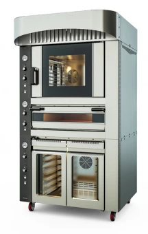 Комбинированный модуль из конвектомата, статической печи, расстоечного шкафа Kocateq FR Combi M предназначен для выпечки хлебобулочных и кондитерских изделий и приготовления различных блюд на предприятиях пищевой промышленности, общественного питания и торговли. Модель состоит из конвектомата, подовой печи, расстоечного шкафа и вытяжного зонта. Корпус выполнен из нержавеющей стали, дверца - из двойного закаленного стекла.