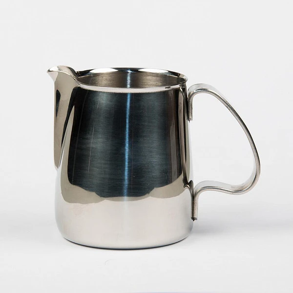Изготовлен из высококачественной нержавеющей стали, что в свою очередь хорошо влияет на теплопроводимость и качество молочной пены.