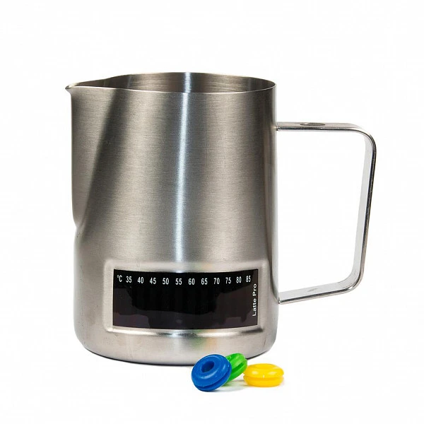 Питчер молочник Barbossa-P.L. 600 мл с индикатором температуры нерж. — специальный кувшин из высококачественной нержавеющей стали, предназначенный для взбивания молока перед розливом в чашки. Используется при приготовлении капучино, латте и других молочно-кофейных напитков.