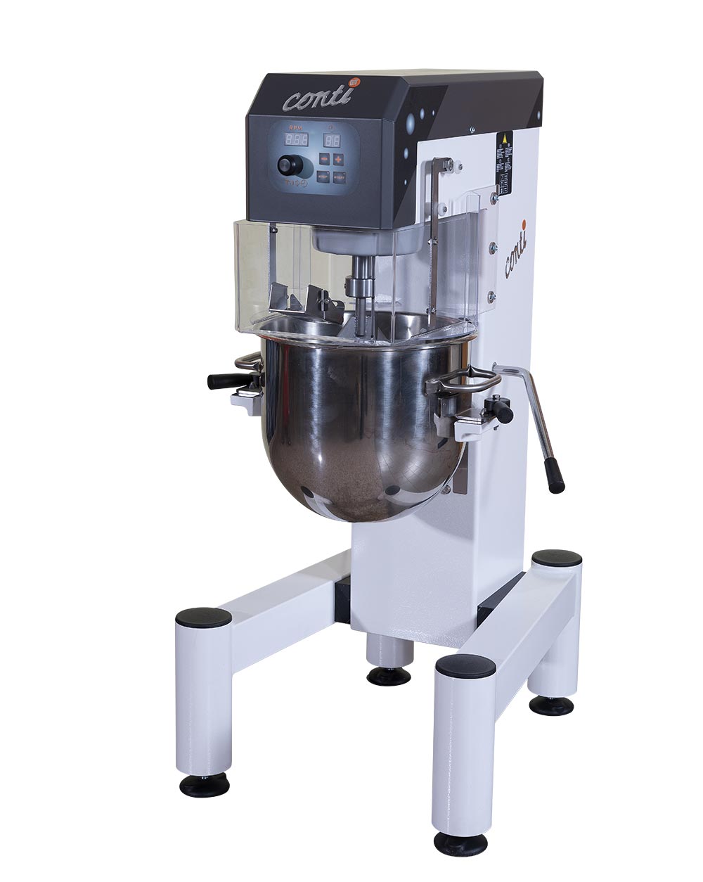 Планетарный миксер Conti PL18 20VE используется на предприятиях общественного питания для замеса самых разнообразных сортов теста - для пиццы, хлеба, печенья, круассанов, рогаликов, заварного, бисквитного, песочного теста, безе, а также для приготовления пюре, майонеза, различных соусов, взбитых сливок и т.п