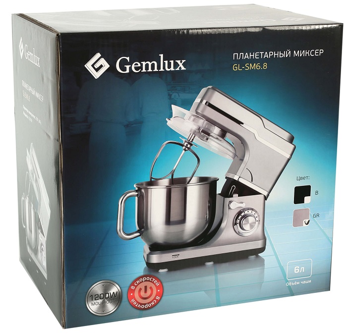 Настольный планетарный миксер Gemlux GL-SM6.8GR предназначен для замеса дрожжевого и бездрожжевого теста различной вязкости, взбивания яиц, сливок, кремов и муссов, приготовления пюре, фарша и т.п.