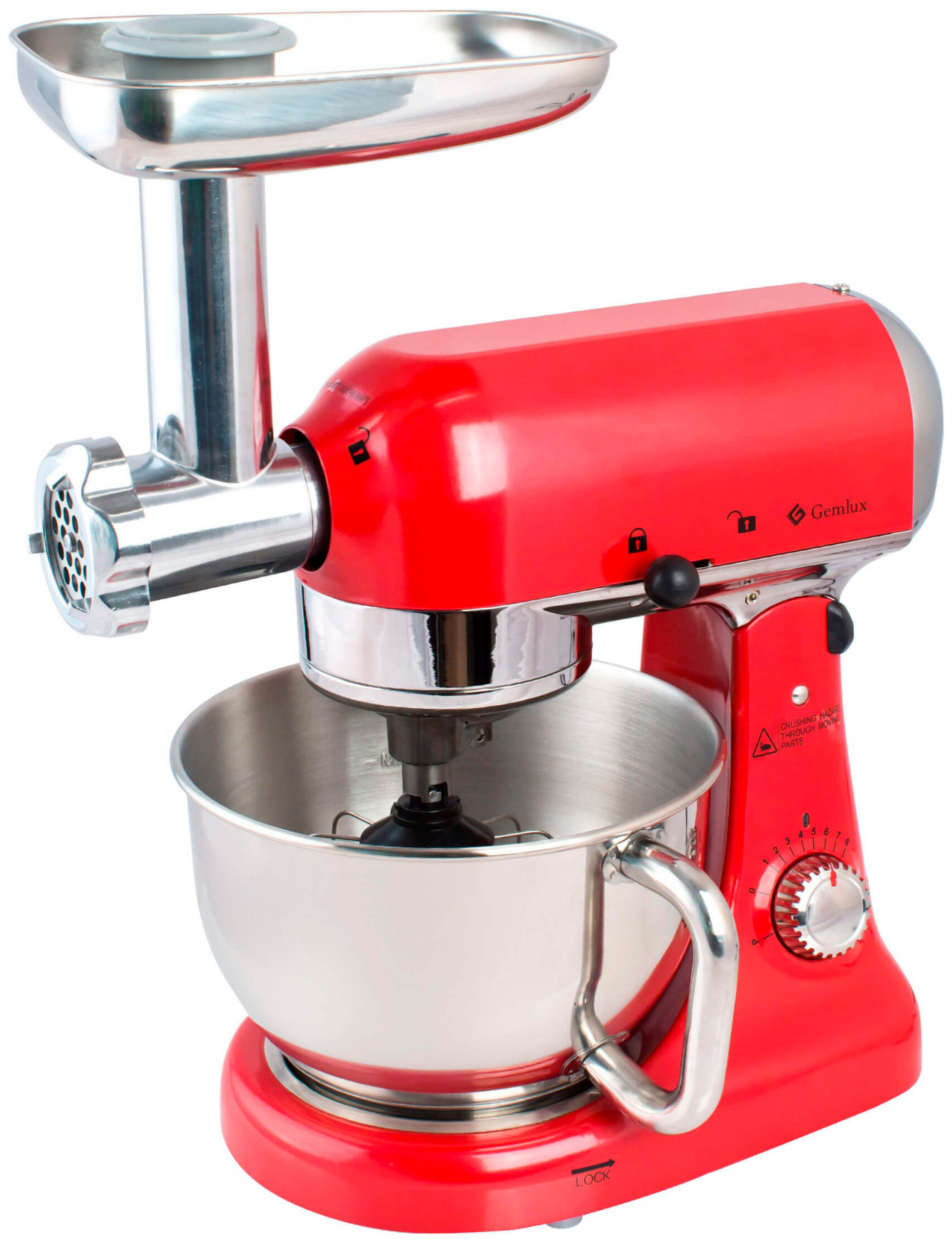 Настольный планетарный миксер Gemlux GL-SMPH5CR с мясорубкой предназначен для замешивания теста различной вязкости, взбивания яиц, сливок, кремов и муссов, приготовления фарша и т.п.
