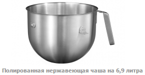 Чаша из полированной нержавеющей стали на 6,9 литра прочно закреплена в подъемной системе. Устойчивость миксера при работе, профессиональное исполнение