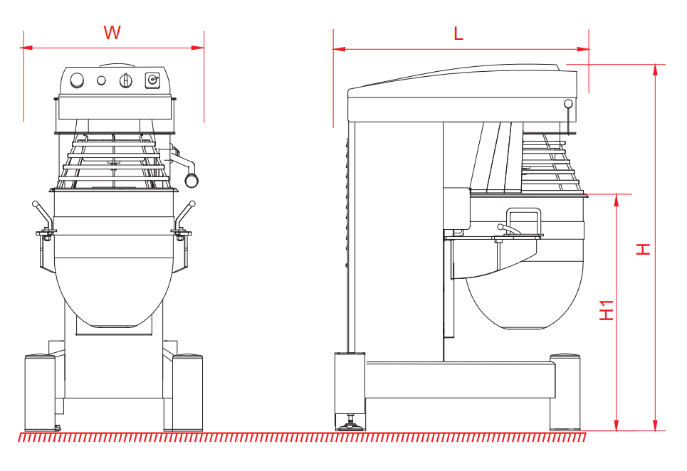 Все детали, соприкасающиеся с тестом, выполнены из нержавеющей стали (дежа и месильные органы).