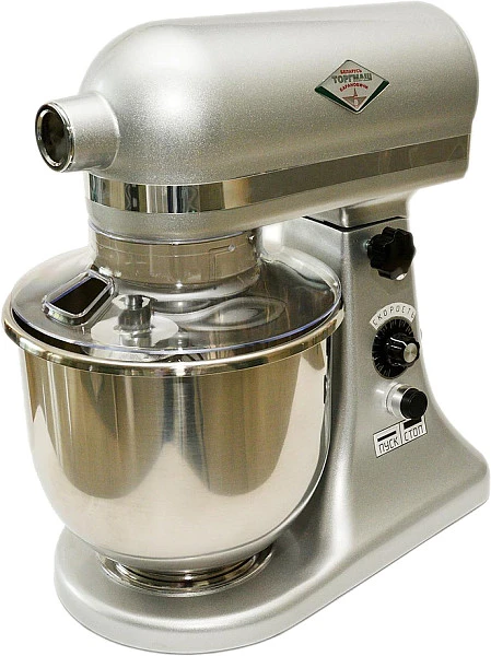 Планетарный миксер Торгмаш Беларусь МП-7 предназначен для замешивания теста, взбивания яиц, сливок, кремов, а также для работы с соусами, паштетами, пюре и майонезом. Есть сменные насадки для выполнения всех задач, которые могут потребоваться в кондитерской, пекарне или на другой профессиональной кухне.