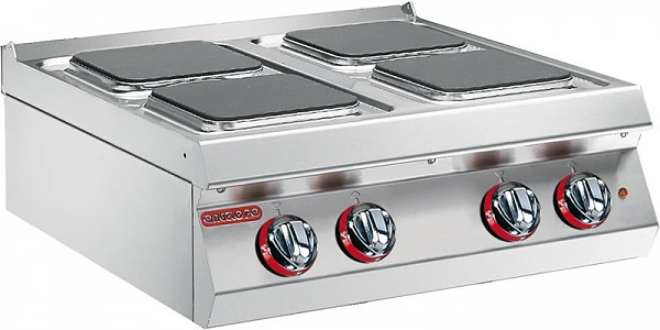 Плита электрическая с 4 квадратными конфорками размером 227*227 мм (2,6 кВт) из полированного чугуна без духового шкафа относится к серии Мedium-duty к модульной линии Gamma.
