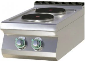 • Плита электрическая настольная оснащена 2 круглыми чугунными конфорками.