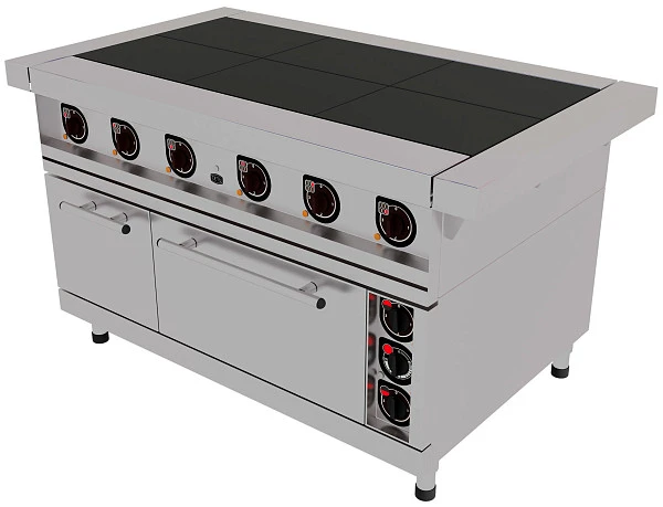 Плита электрическая Gabino S6F-Z-01 6-конфорочная с жарочным шкафом предназначена для приготовления первых вторых и третьих блюд, жарки широкого спектра продуктов из мяса, рыбы, овощей, приготовления выпечки.