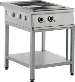 Конфорки образуют ровную поверхность; 2 чугунные разборные конфорки, 285*415 мм, мощность 2,5 кВт - 1 шт., 3,0 кВт - 1 шт.