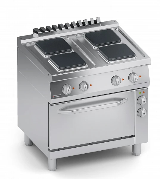 Плита электрическая Veroterm VT7CUE10FVQ с конвекционным шкафом предназначена для приготовления первых, вторых, третьих блюд в наплитной посуде, а также для жарки полуфабрикатов из мяса, рыбы, овощей.