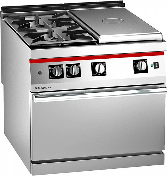 Плита газовая Angelo Po 1N1FABGV с газовым конвективным шкафом предназначена для приготовления первых, вторых и третьих блюд в наплитной посуде, а также для жарки полуфабрикатов из мяса, рыбы, овощей и выпечке мелкоштучных кулинарных изделий.