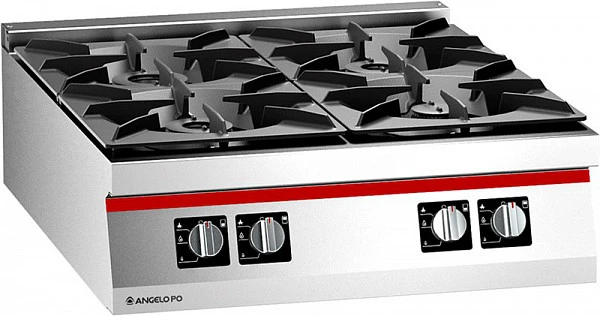 Плита газовая Angelo Po 1T0FAD предназначена для приготовления первых, вторых и третьих блюд в наплитной посуде, а также для жарки полуфабрикатов из мяса, рыбы, овощей и выпечке мелкоштучных кулинарных изделий.