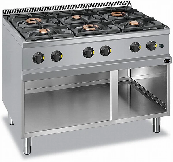 Плита газовая 6-ти конфорочная 700 серии Apach APRG-117P предназначена для приготовления первых, вторых, третьих блюд в наплитной посуде на предприятиях общественного питания и торговли.
