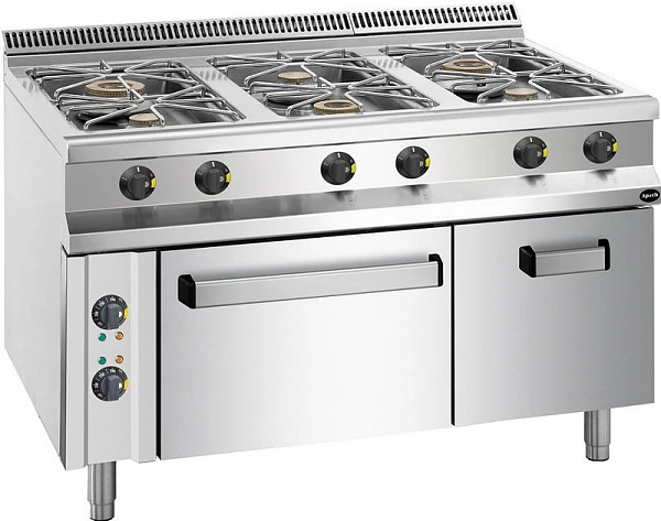 Плита газовая Apach APRG-129FE 6-ти конфорочная 900 серии предназначена для приготовления первых, вторых, третьих блюд в наплитной посуде на предприятиях общественного питания и торговли.