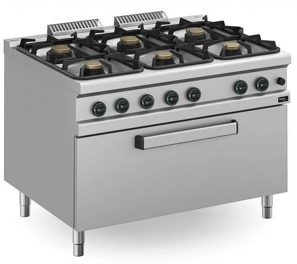 Плита газовая Apach APRG-129FM/PL 6-ти конфорочная 900 серии предназначена для приготовления первых, вторых, третьих блюд в наплитной посуде на предприятиях общественного питания и торговли.