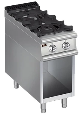 Плита оснащена открытой подставкой, что позволяет использовать ее как дополнительный элемент для хранения.