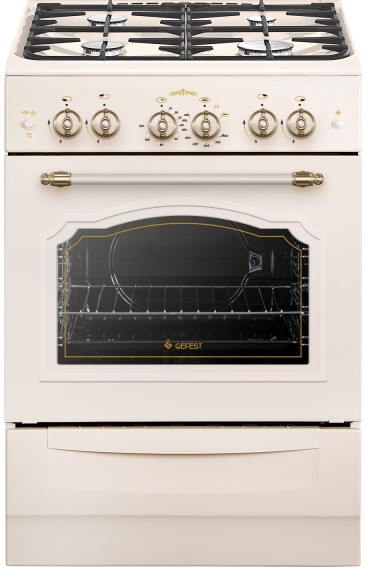 Плита газовая Gefest ПГ 6100-02 0167 стильный бытовой прибор с бежевым дизайном полностью покрыт защитной эмалью, обеспечивающей простоту очистки от загрязнений и длительное сохранение привлекательного внешнего вида. Оборудование оснащено духовым шкафом на 52 л и четырьмя конфорками. Для управления используются удобные поворотные рычаги.