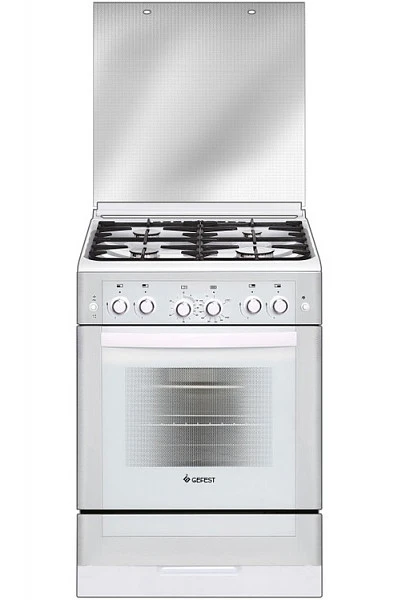 Плита газовая Gefest ПГ 6300-02 0040 газовая плита белого цвета, ширина 60 см. Классический дизайн, фасад и защитная крышка рабочего стола - стеклянные.