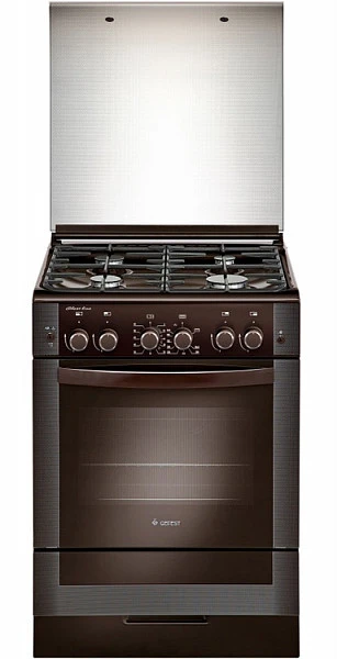 Газовая плита коричневого цвета, ширина 60 см. Классический дизайн, фасад и защитная крышка рабочего стола - стеклянные. Плита укомплектована всем необходимым для ежедневного комфортного использования. Горелки с электроподжигом, в жарочном шкафе установлен газ-контроль. Духовка - вместительная, нагрев можно контролировать, установив температуру лишь раз (термостат). А гриль и вертел с электроприводом помогут достичь равномерного прогрева и замечательной хрустящей мясной корочки. Варочная поверхность с 4 конфорками различного диаметра и мощности защищена составными и фигурными чугунными решетками, а брызги масла при обжаривании на сковороде попадают на крышку, не пачкая стен.