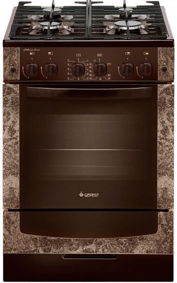 Плита газовая Gefest ПГ 6500-02 0114 коричневая газовая плита шириной 60 см, с рисунком-имитацией "мрамор" и стеклянными фасадом и рабочей поверхностью.