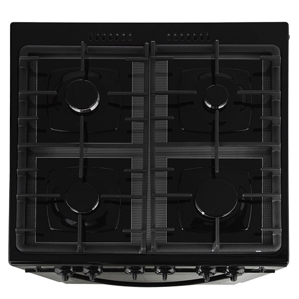 Рабочий стол для четырех конфорок дополнен чугунными решетками, есть мощная. Все горелки с электроподжигом, нижняя горелка оснащена газ-контролем. В центре панели управления установлен механический таймер, об окончании времени подается звуковой сигнал.