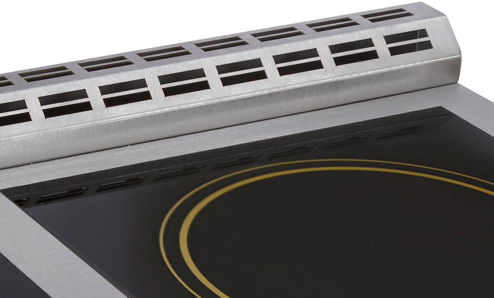 Плита подходит для одновременного приготовления двух разных блюд или продуктов. При этом не нужно бояться смешения запахов. Встроенный воздуховод выполняет функцию локальной вытяжки, что хорошо и для продуктов — сохраняется их аромат, и для рабочей зоны в целом — жар уходит, температура воздуха не поднимается, готовить в таких условиях комфортнее.