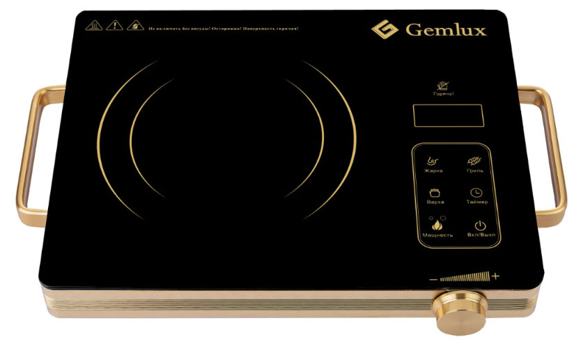 Инфракрасная одноконфорочная плита Gemlux GL-IC20G в исполнении Gold (черный с золотом) идеально подойдет для дома и дачи. Плита обладает низкой тепловой инерцией и очень экономична в эксплуатации. В отличие от настольных индукционных плит, для приготовления и разогрева пищи можно использовать посуду из любого термостойкого материала: стали, чугуна, алюминия, меди, керамики, закаленного стекла и т.п. Плита имеет сенсорное управление с ЖК-дисплеем, таймером на 2 часа 59 минут и тремя предустановленными режимами работы: