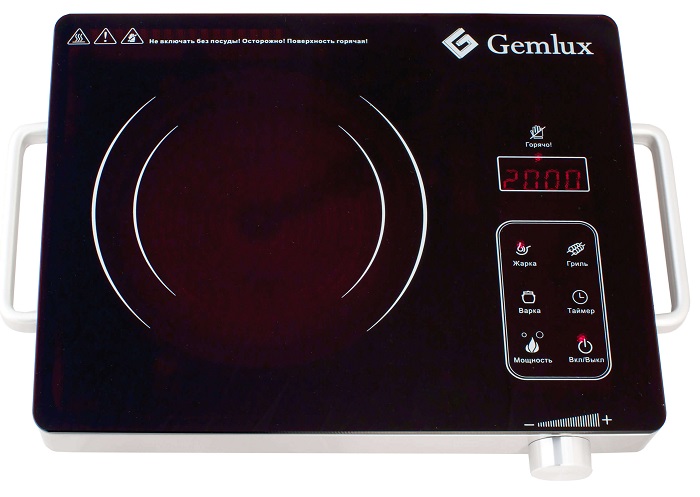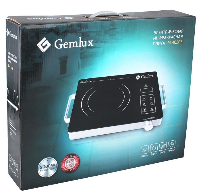 Инфракрасная одноконфорочная плита Gemlux GL-IC20S в исполнении Platinum (черная стеклокерамическая панель, корпус из белого металла) идеально подойдет для дома и дачи. В отличие от настольных индукционных плит, для приготовления и разогрева пищи можно использовать посуду из любого термостойкого материала: стали, чугуна, алюминия, меди, керамики, закаленного стекла и т.п. Плита имеет сенсорное управление с ЖК-дисплеем, таймером на 2 часа 59 минут и тремя предустановленными режимами работы: