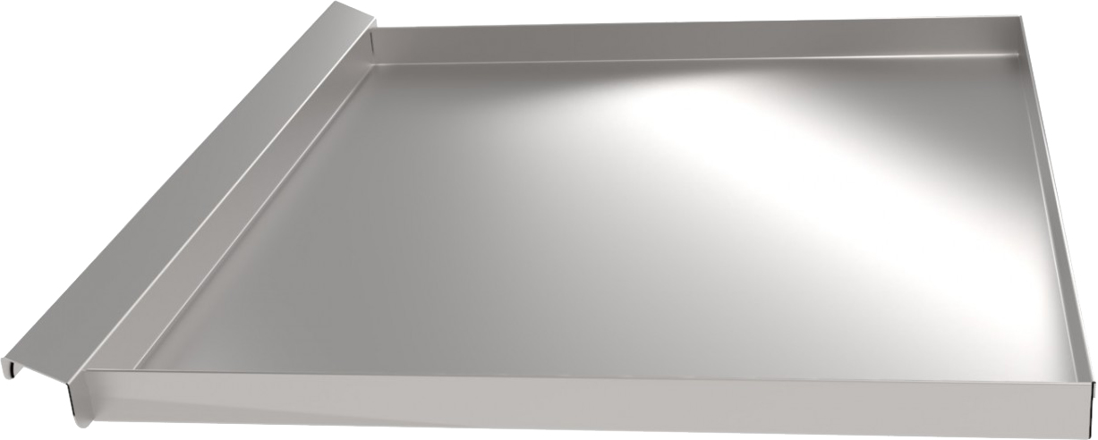 Поддон представляет собой прямоугольный короб, с высотой борта 40мм, изготовленный из нержавеющей стали AISI430.